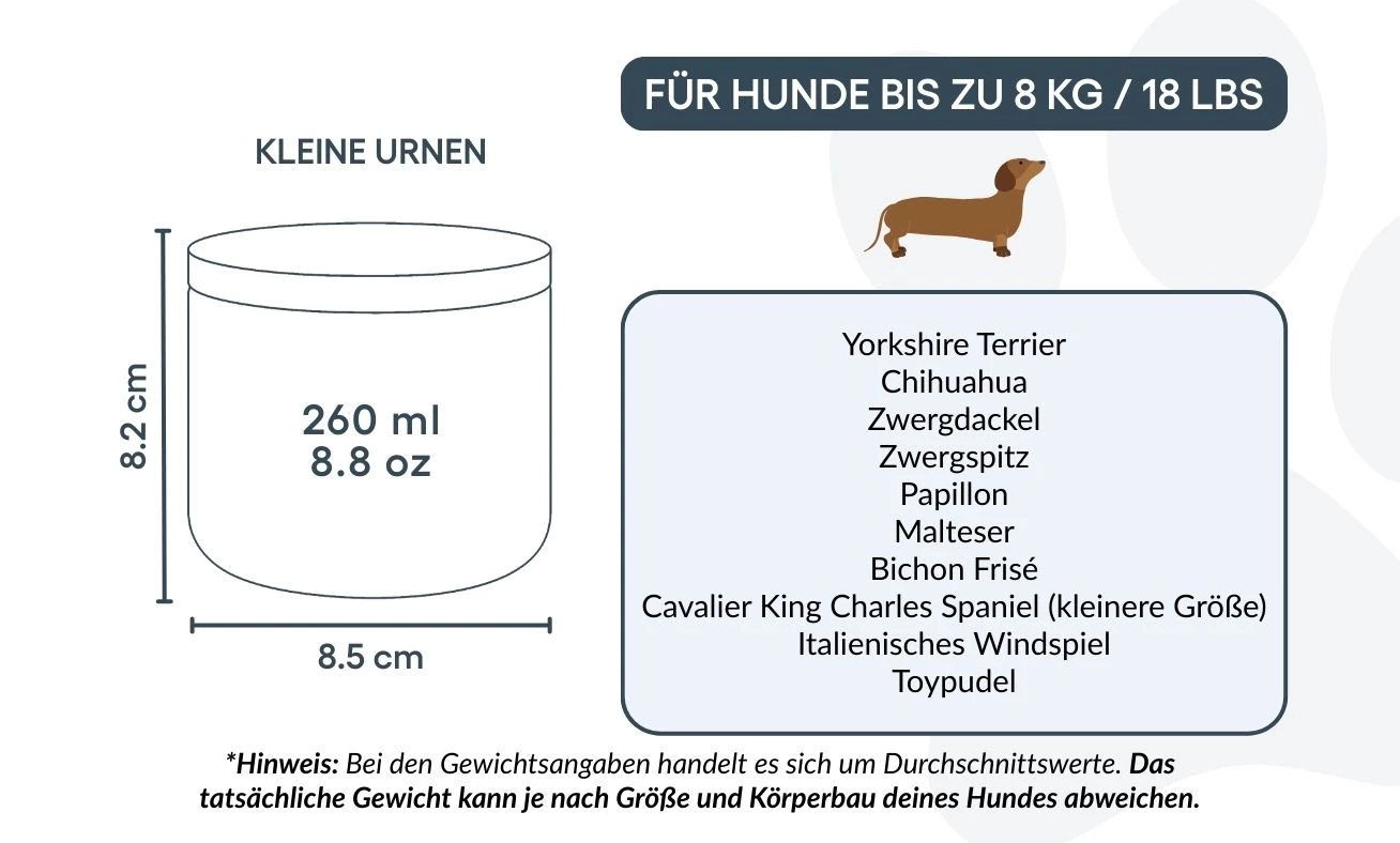 Größen / Fassungsvermögen der Urne: