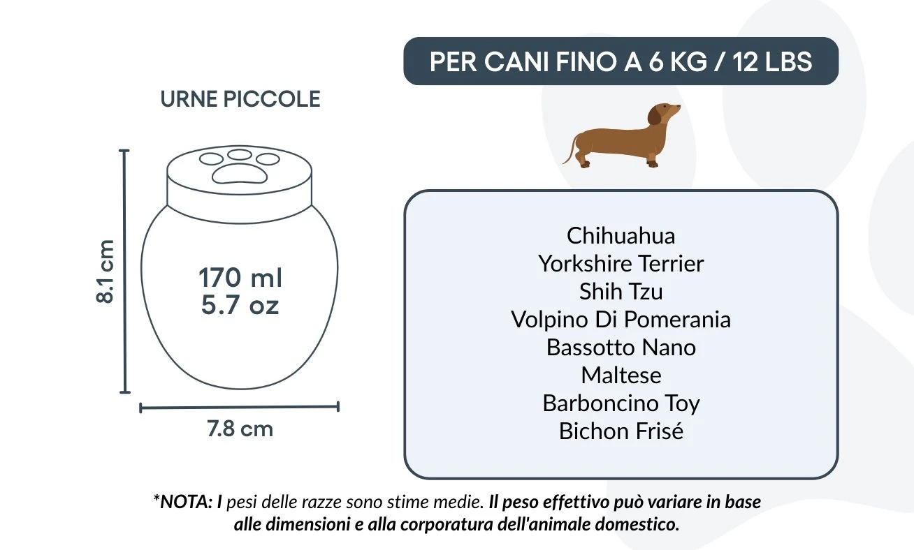 Abschied von einem geliebten Liebling zu nehmen, ist nie leicht. Unsere personalisierten Tierurnen aus Keramik wurden mit Sorgfalt gefertigt, um Trost zu spenden und eine würdevolle letzte Ruhestätte zu schaffen. Jede Keramikurne ist in Handarbeit veredelt und in drei Größen erhältlich – passend für Hunde unterschiedlicher Rassen und Gewichte.