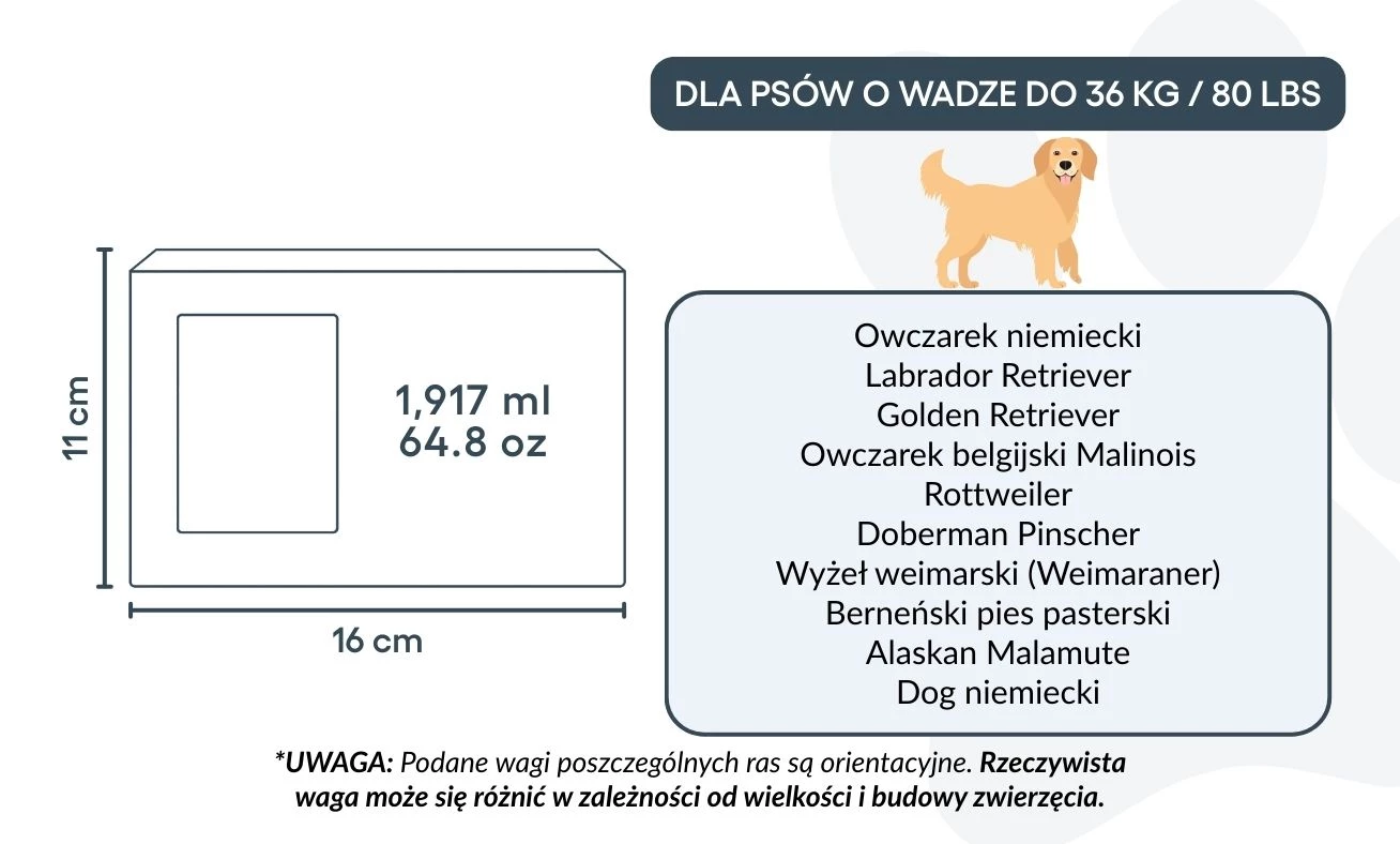 Convient pour les chiens jusqu’à environ 27 kg