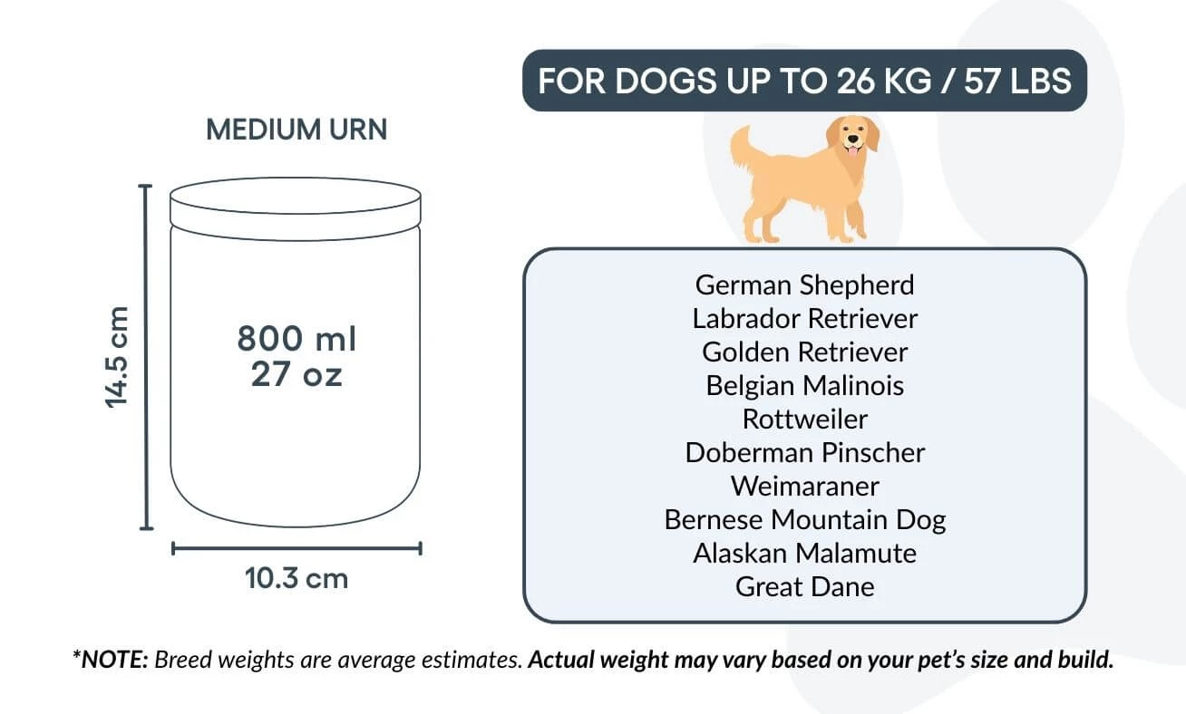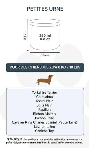 Disponible en deux tailles, cette urne funéraire en céramique est conçue pour préserver les cendres de votre animal avec respect tout en rendant hommage à son souvenir. Placée sur une étagère, une cheminée ou une table commémorative, elle constitue bien plus qu’un simple contenant : c’est un hommage sincère à un compagnon fidèle et à l’amour partagé.